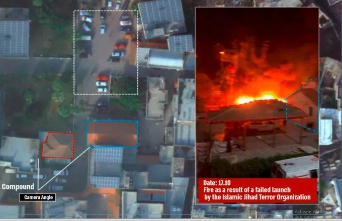 "Μια αποτυχημένη εκτόξευση ρουκέτας από την τρομοκρατική οργάνωση Ισλαμική Τζιχάντ έπληξε το νοσοκομείο Αλ-Αχλί στην πόλη της Γάζας. Πλάνα της IAF (Ισραηλινή Πολεμική Αεροπορία) από την περιοχή γύρω από το νοσοκομείο πριν και μετά την αποτυχημένη εκτόξευση πυραύλου από την τρομοκρατική οργάνωση Ισλαμική Τζιχάντ" σημειώνεται.