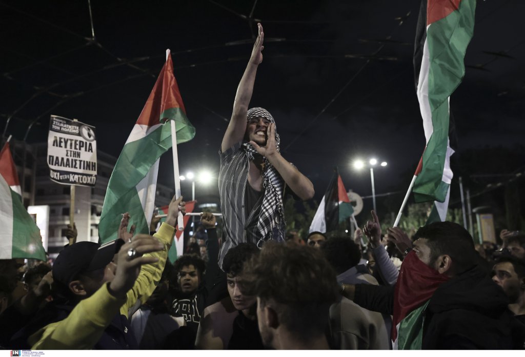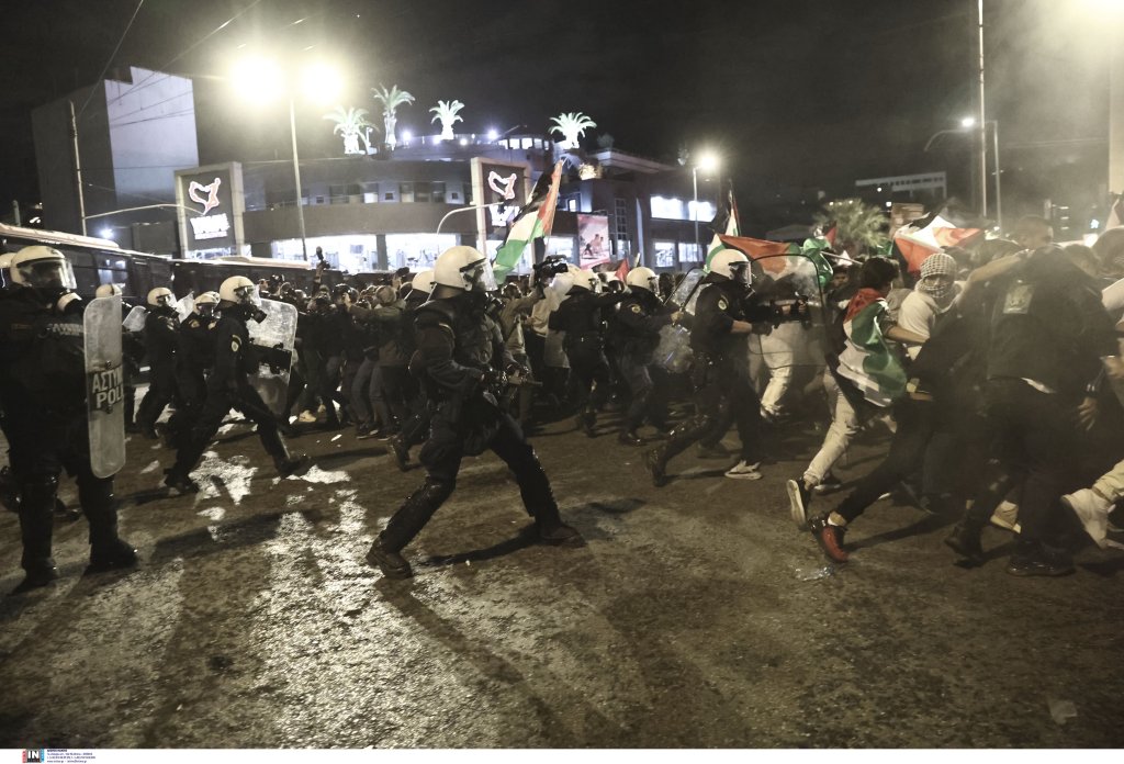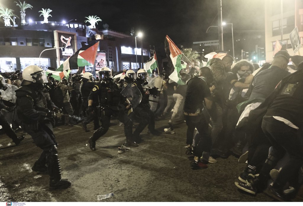 Επεισόδια με ρήψη δακρυγόνων από την ΕΛ.ΑΣ σημειώθηκαν λίγο μετά τις 9.30 το βράδυ έξω από την πρεσβεία τους Ισραήλ στην Αθήνα. Στο σημείο ήταν συγκεντρωμένοι χιλιάδες διαδηλωτές, οι οποίοι εξέφρασαν την υποστήριξή τους στον παλαιστινιακό λαό. Οι διαδηλωτές παραμένουν στην περιοχή φωνάζοντας συνθήματα για την λευτεριά της Παλαιστίνης.