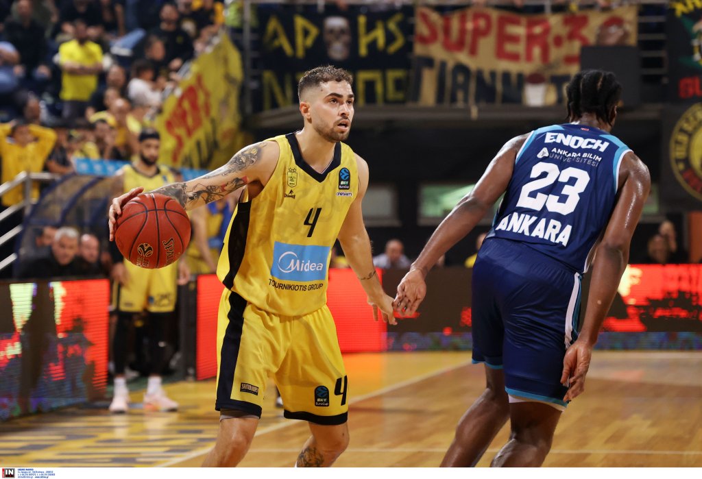 Στο καλό ξεκίνημα του Άρη, ο οποίος πήγε στο +7 (9-2) στο πρώτο δίλεπτο, απάντησε η Τουρκ Τέλεκομ, παίρνοντας το προβάδισμα και πηγαίνοντας εκείνη στο +4 (14-18), στο 5’. Στη συνέχεια, οι «κίτρινοι» ανέβασαν ρυθμό και αντέδρασαν με σερί 9-0 για το +5 (23-18), με τις 2/2 βολές του Γουάλας να διαμορφώνουν το 23-20 της πρώτης περιόδου.