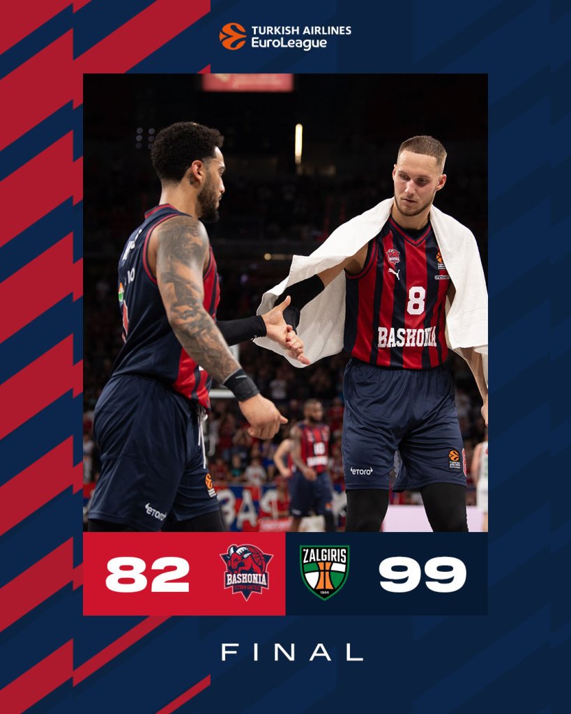 Μεγάλο διπλό με πέτυχε η Ζάλγκιρις στην έδρα της Μπασκόνια, υποχρεώνοντάς την στην τρίτη της ήττα σε τέσσαρα παιχνίδι στην EuroLeague. Η ομάδα του Κάζις Μακσβίτις από την άλλη ανέβηκε στο 3-1, μετά την πρώτη νίκη της μακριά από το Κάουνας.