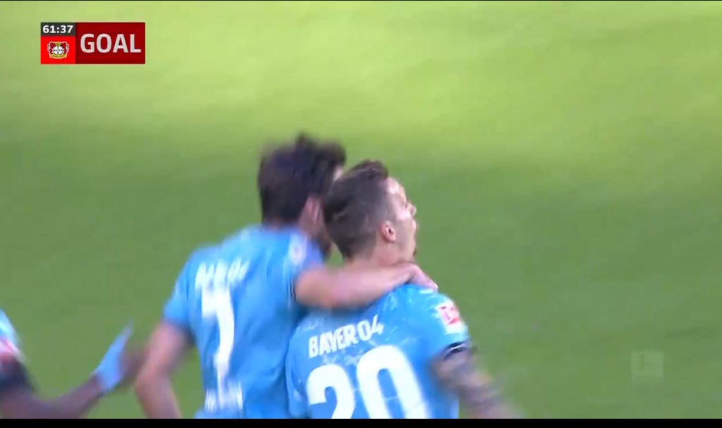 Στα 44 δευτερόλεπτα, ο Άρνολντ είδε εκτός θέσης τον γκολκίπερ της Λεβερκούζεν και προσπάθησε να τον νικήσει, από μακρινή απόσταση, χωρίς αποτέλεσμα. Οι φιλοξενούμενοι βγήκαν στην κόντρα, στο 13ο λεπτό, ο Μπόνιφεϊς κράτησε την μπάλα, έκανε τις ντρίμπλες, έβγαλε τη σέντρα στο δεύτερο δοκάρι, εκεί όπου ο Φρίμπονγκ έπιασε τη κεφαλιά, με τον Πέρβαν να μπλοκάρει. Μόνο που η μπάλα είχε περάσει τη γραμμή τέρματος και, έτσι, η Λεβερκούζεν άνοιξε το σκορ. Η Βόλφσμπουργκ θέλησε να απαντήσει άμεσα και, στο επόμενο λεπτό, ο Τόμας βρέθηκε απέναντι από τον Χραντέτσκι, με τον τερματοφύλακα της Λεβερκούζεν να διώχνει τον κίνδυνο. Η ομάδα του Τσάμπι Αλόνσο είχε τελική με τον Μπόνιφεϊς, στο 31ο λεπτό, με τη μπάλα να περνάει δίπλα από το δεξί δοκάρι και, δέκα λεπτά αργότερα, η Βόλφσμπουργκ έφτασε στην ισοφάριση. Μετά από εκτέλεση κόρνερ, από τις κόντρες ευνοήθηκε ο Λακρουά, εκείνος έστειλε την μπάλα στα δίχτυα και έκανε το 1-1.