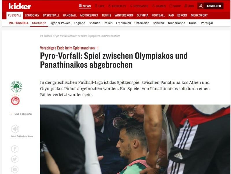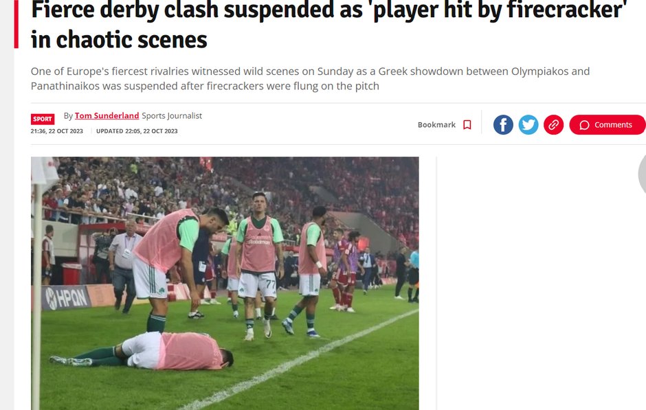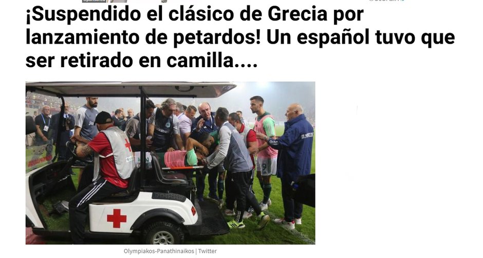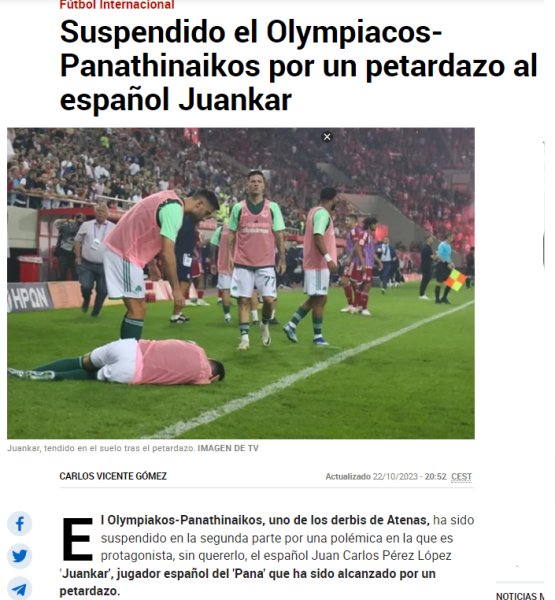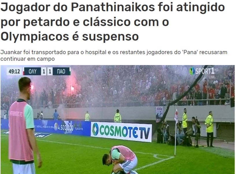 Ο ευρωπαϊκός Τύπος ασχολήθηκε με όσα έγιναν, την Κυριακή το βράδυ, στο "Γ. Καραϊσκάκης", στο ντέρμπι Ολυμπιακός-Παναθηναϊκός, με την οριστική διακοπή, λόγω του τραυματισμού του Χουάνκαρ, από κροτίδα.