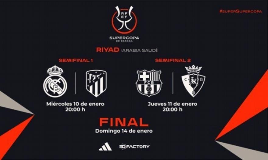 Στα ημιτελικά θα τεθούν αντιμέτωποι οι δύο ομάδες της Μαδρίτης, η Ρεάλ (νικήτρια του Κυπέλλου) και η Ατλέτικο (τρίτη στη La Liga) και η Μπαρτσελόνα (πρωταθλήτρια Ισπανίας) με την Οσασούνα (φιναλίστ του Κυπέλλου) στις 10 και 11 Ιανουαρίου.
