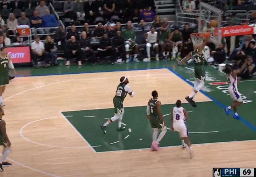Με μια φοβερή ενέργεια, ο Ντέιμιαν Λίλαρντ πέτυχε τρίποντο, πήρε και το φάουλ, στον αγώνα με τους Φιλαδέλφεια Σίξερς, με αποτέλεσμα ο 33χρονος γκαρντ των Μιλγουόκι Μπακς να βρίσκεται στην κορυφή του Top με τις πέντε καλύτερες φάσεις, από τα δυο παιχνίδια που έγιναν τα ξημερώματα.