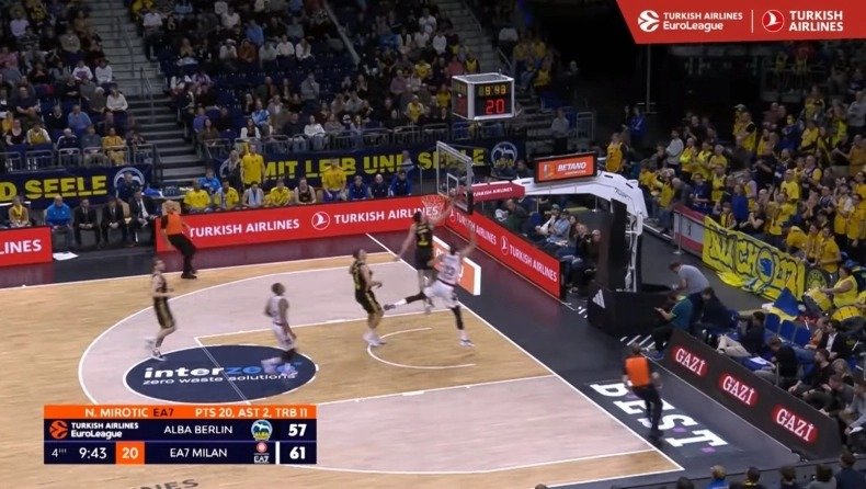 Στην κορυφή βρίσκεται η τάπα του Γκάμπριελ Προτσίντα της Άλμπα Βερολίνου στην προσπάθεια του Νίκολα Μίροτιτς της Αρμάνι Μιλάνο.