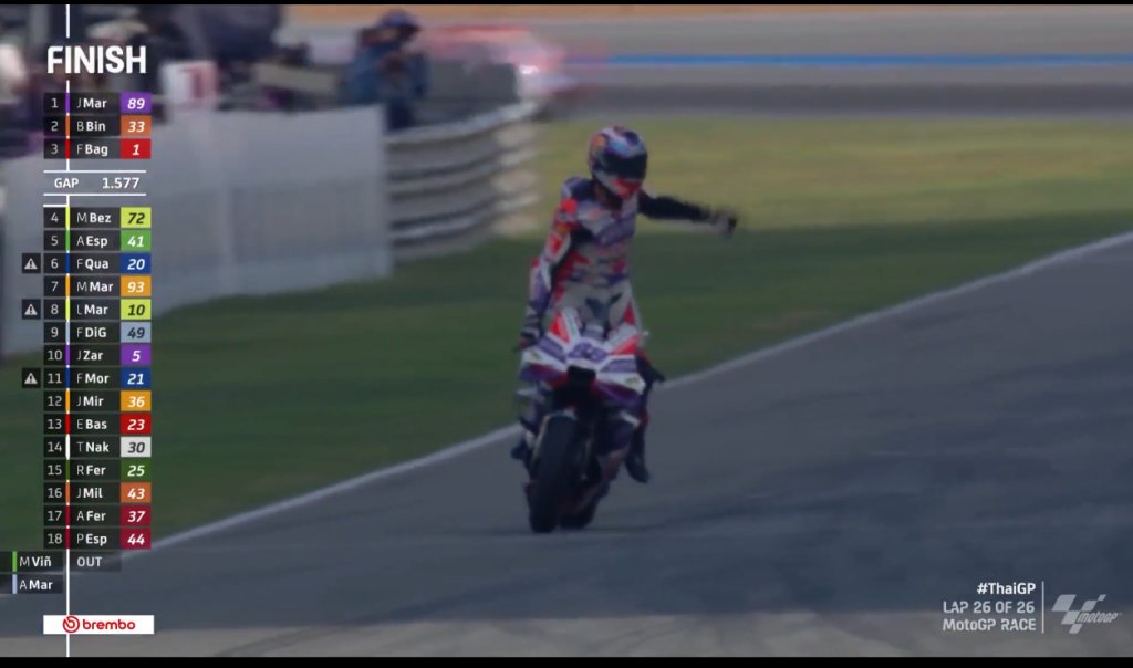 Με αυτή τη νίκη, ο Ισπανός αναβάτης της Ducati μείωσε στους 13 βαθμούς την απόσταση από τον πρωτοπόρο Πέκο Μπανάια, που τερμάτισε δεύτερος.