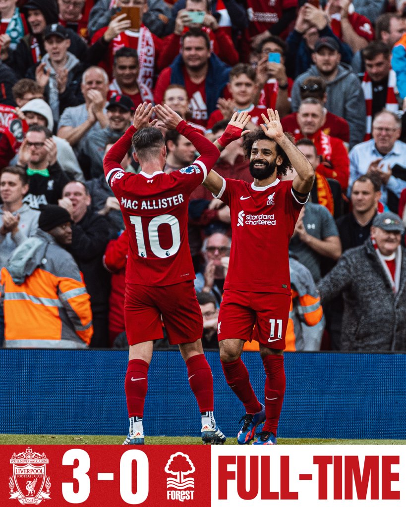 Εύκολο απόγευμα είχε η Λίβερπουλ κόντρα στη Νότιγχαμ Φόρεστ την οποία κέρδισε με 3-0 και βρέθηκε στο -3 από την πρωτοπόρο, Τότεναμ.