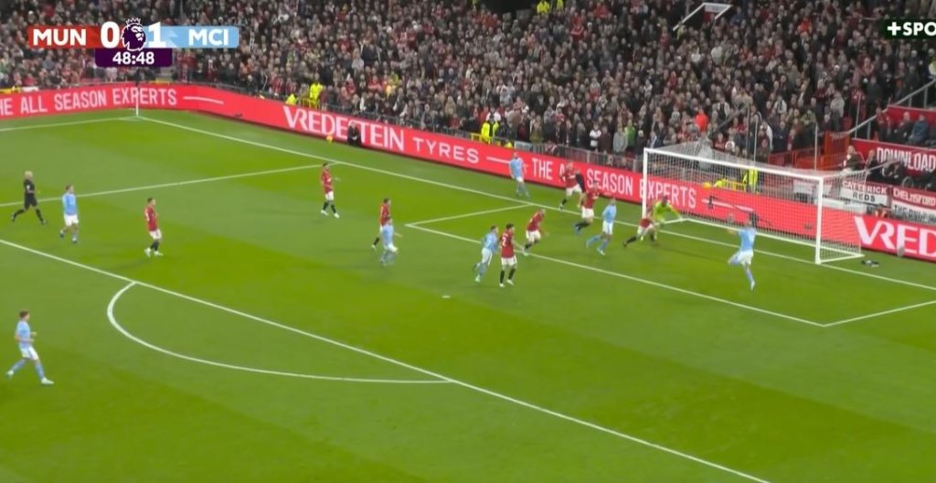 Ο Γκρίλις άφησε αριστερά στον Μπερνάρντο Σίλβα, εκείνος σέντραρε με τη μία και ο Χάαλαντ με κεφαλιά στο πίσω δοκάρι έγραψε το 0-2
