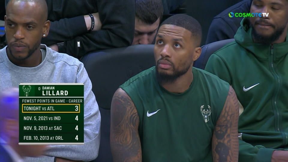 Σκιά του καλού του εαυτού ήταν ο Ντέιμιαν Λίλαρντ, στη συντριβή των Μπακς από τους Ατλάντα Χοκς, μέσα στο Μιλγουόκι. Μάλιστα, ο 33χρονος γκαρντ γλίτωσε, την τελευταία στιγμή, το αρνητικό ρεκόρ πόντων, αφού τελείωσε τον αγώνα, έχοντας σημειώσει 6 πόντους.