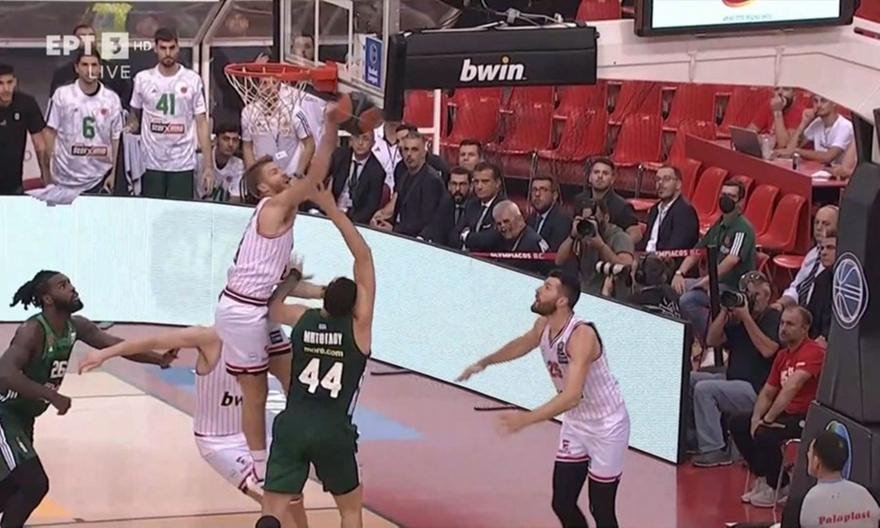 Ο Ντίνος Μήτογλου έφυγε στον αιφνιδιασμό και προσπάθησε να σκοράρει με λέι απ, όμως ο Αμερικανός γκαρντ δεν παράτησε τη φάση και τον έκοψε εντυπωσιακά!