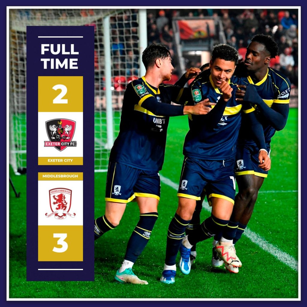 Στα προημιτελικά του Λιγκ Καπ γη Μίντλεσμπρο που κέρδισε με 3-2 στην έδρα της Έξετερ.