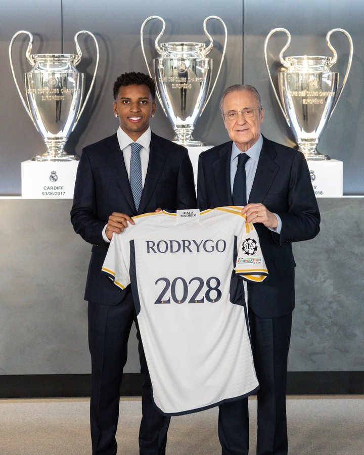 Οι "Μερένχες" είχαν φτάσει σε συμφωνία με τον 22χρονο για συμβόλαιο συνεργασίας μέχρι το 2028 και ρήτρα αποδέσμευσης 1 δισεκατομμυρίου ευρώ, με το deal να παίρνει σάρκα και οστά σήμερα (02/11) και τον Ροδρίγου να βάζει την υπογραφή του, δεσμεύοντάς τον για επιπλέον τρία χρόνια, μιας και το υπάρχον συμβόλαιο που είχε εξέπνεε στις 30 Ιουνίου του 2025.