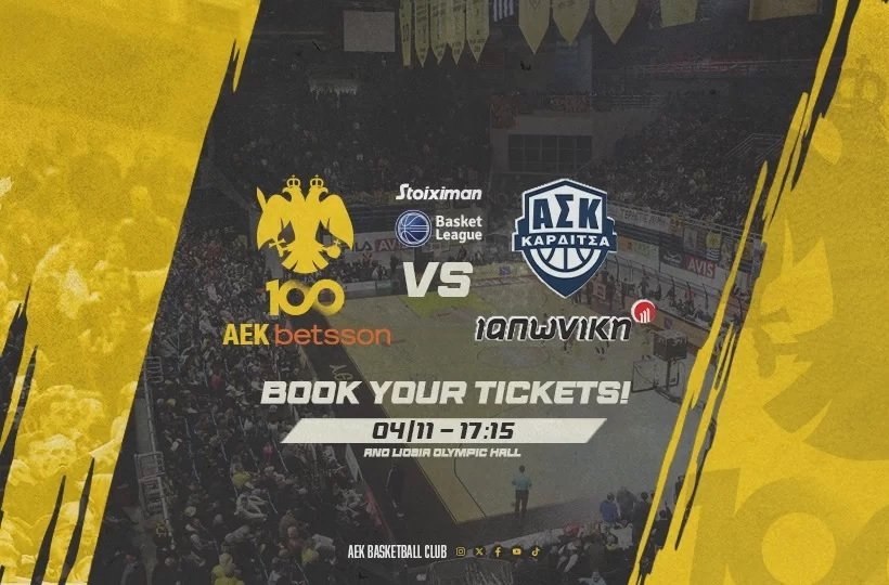 Η ΑΕΚ ΒETSSON BC ενημερώνει, ότι ξεκίνησε η διάθεση των εισιτηρίων για την αναμέτρηση της «Βασίλισσας» με αντίπαλο τον Α.Σ. Καρδίτσας ΙΑΠΩΝΙΚΗ, στο πλαίσιο της 5ης αγωνιστικής της Stoiximan Basket League 2023-2024, η οποία θα διεξαχθεί το Σάββατο (04/11, 17:15), στο Olympic Hall των Άνω Λιοσίων.