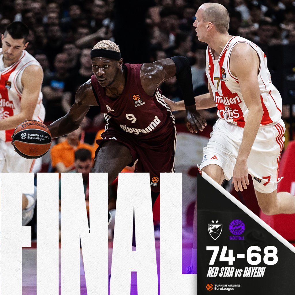 Μεγάλη νίκη σημείωσε ο Ερυθρός Αστέρας, ο οποίος επικράτησε στο Βελιγράδι της Μπάγερν Μονάχου με 74-68. Η ομάδα του Γιάννη Σφαιρόπουλου επέστρεψε από το -12 και πήρε μια πολύ σημαντική νίκη. Κορυφαίος για τους νικητές ο Μίλος Τεόντοσιτς με 16 πόντους και 11 ασίστ, ενώ για τους ηττημένους ξεχώρισε ο Έντουαρντς που είχε και αυτός 16 πόντους.