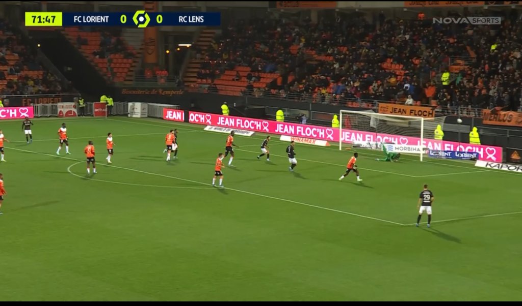 Οι φιλοξενούμενοι είχαν και δοκάρι στο 47’ με καταπληκτικό σουτ του Σοτοκά στο 47’, από απόσταση 35 μέτρων. Η Λοριάν προτίμησε να κλειστεί στην άμυνα και να προστατεύσει την περιοχή της. Δεν απείλησε ιδιαίτερα την εστία του Σαμπά, αν και στο 66’ σημείωσε γκολ με κεφαλιά του Κρουπί, το οποίο ορθώς ακυρώθηκε με τον σκόρερ σε θέση οφσάιντ. Πλέον, στη Λανς στρέφουν την προσοχή τους στο ματς με την Αϊντχόφεν, για το Champions League, όπου, με νίκη, η γαλλική ομάδα εξασφαλίζει πρόκριση.