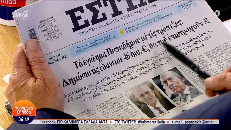Τα θέματα της ειδησεογραφίας που αναδεικνύονται στον ελληνικό Τύπο, σήμερα 6/11