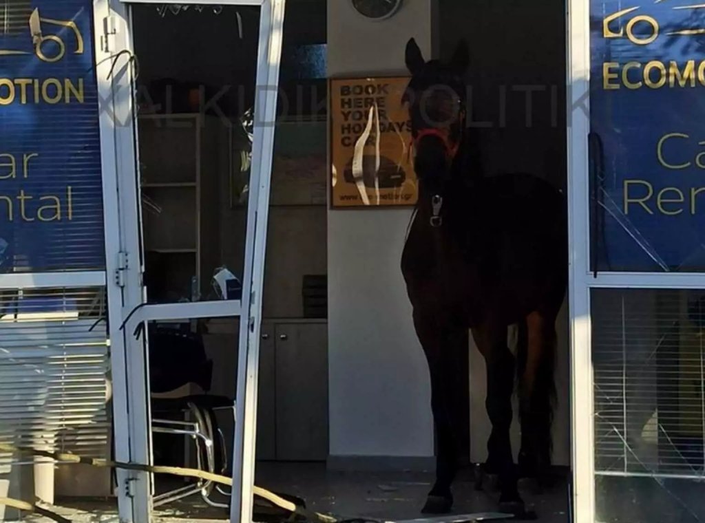 Όπως φαίνεται στις φωτογραφίες του xalkidikipolitiki.gr το άλογο έκανε γυαλιά καρφιά το κατάστημα ενοικιαζομένων αυτοκινήτων στη Νικήτη στη Χαλκιδική και στη συνέχεια έμεινε ήρεμο στην είσοδο, απέναντι από κατοίκους της περιοχής και υπαλλήλους που πετάχτηκαν έξω έντρομοι.