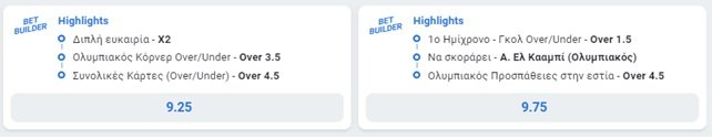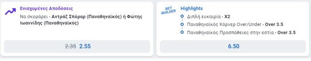 Δεύτερη σερί υπέρβαση κόντρα σε ομάδα της Premier League δεν είναι απλή υπόθεση. Ειδικά από τη στιγμή που η Γουέστ Χαμ ψάχνει απεγνωσμένα αντίδραση μετά και τις τρεις σερί ήττες στο πρωτάθλημα. Θα το παλέψει ωστόσο ο Ολυμπιακός και ένα γκολ μπορεί να το βρει. Το συνδυαστικό στοίχημα Goal/Goal & Ολυμπιακός Over 2,5 κάρτες σε απόδοση 3.20 στο Bet Builder της Stoiximan.