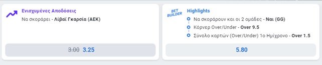 Πολύ μεγάλο το ματς στη Νέα Φιλαδέλφεια. Η ΑΕΚ συνήθως βγάλει πολλή ένταση στο χορτάρι όταν παίζει εντός έδρας και έχει τον τρόπο να επιβάλλει τον ρυθμό της. Η Μαρσέιγ διαθέτει μπόλικη ποιότητα, εντούτοις συχνά βγάζει αφέλεια στο παιχνίδι της αλλά και χαμηλό επίπεδο συγκέντρωσης. Το συνδυαστικό στοίχημα 1 & Goal/Goal στο 4.30 της Stoiximan.
