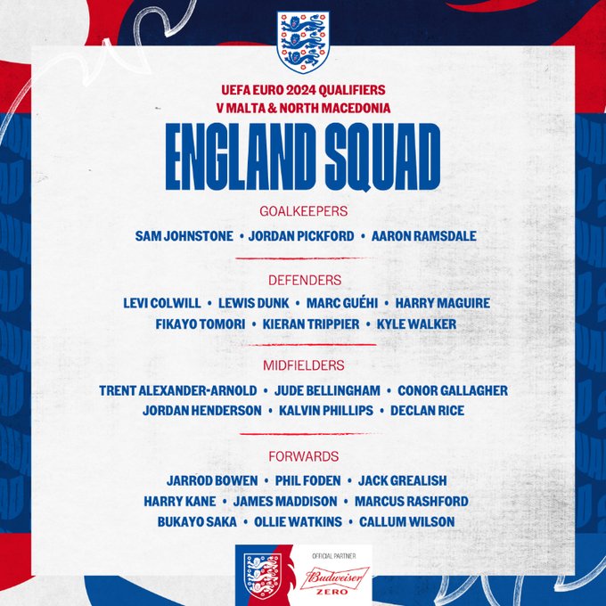 Να θυμίσουμε πως η Αγγλία που έχει εξασφαλίσει ήδη την πρόκριση στα τελικά της διοργάνωσης, θα αντιμετωπίσει τη Μάλτα (17/11, εντός) και τη Βόρεια Μακεδονία (20/11, εκτός), για τις δύο τελευταίες αγωνιστικές του τρίτου ομίλου των προκριματικών του Euro 2024.