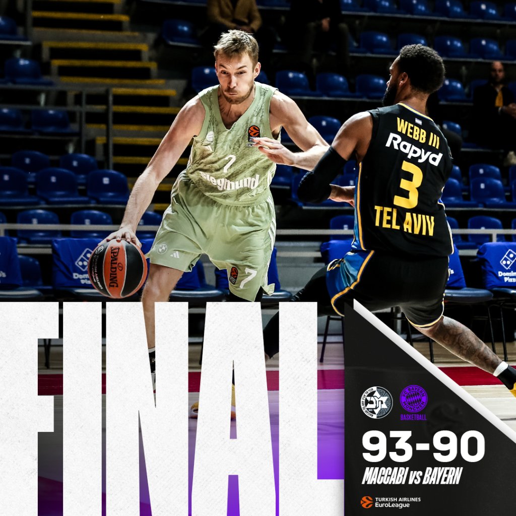 Η Μακάμπι στο πρώτο της παιχνίδι στο.... προσωρινό της σπίτι στο Βελιγράδι κέρδισε την... κρυάδα και επιβλήθηκε της Μπάγερν με 93-90 παραμένοντας στα υψηλά στρώματα της βαθμολογίας στην Euroleague.