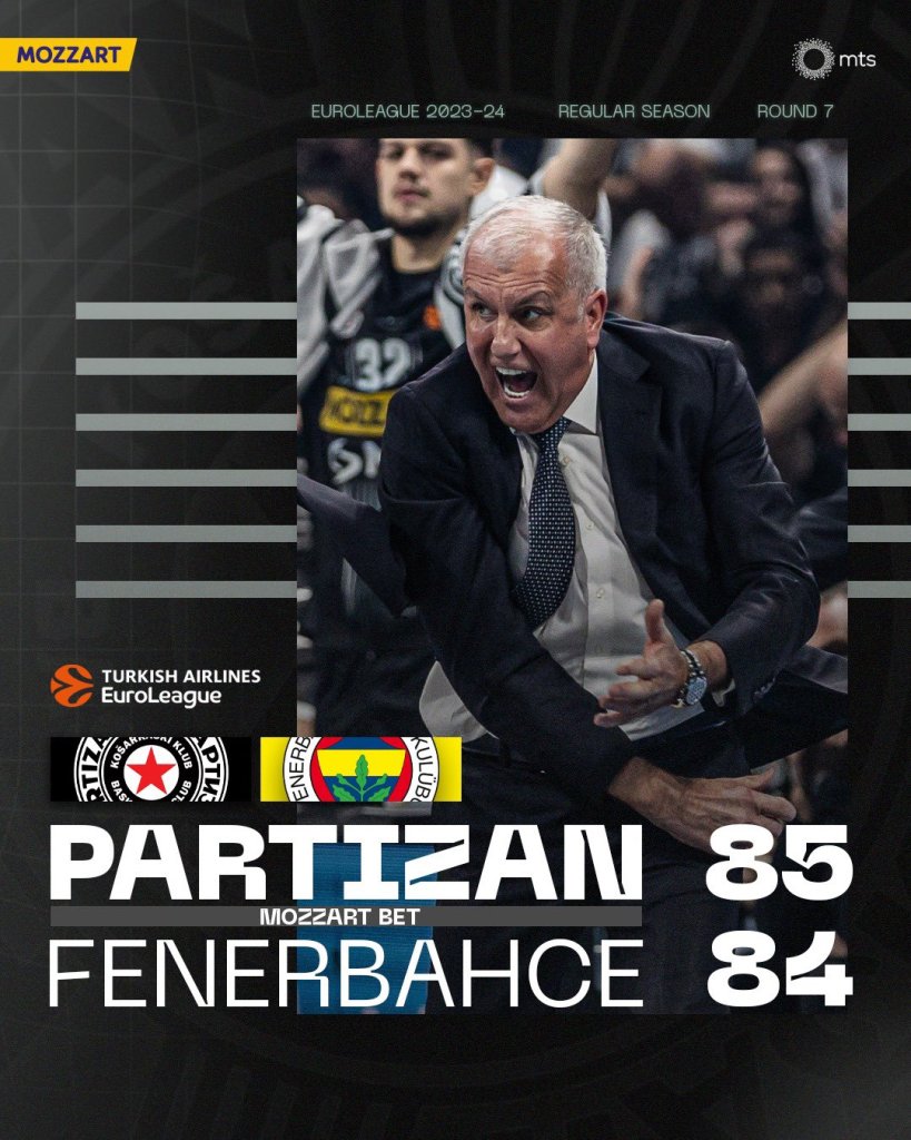 Η Παρτιζάν πήρε μια μεγάλη νίκη και με σπουδαία ανατροπή κόντρα στη Φενέρμπαχτσε με 85-84. Οι Σέρβοι βρέθηκαν πίσω με 14 πόντους στο 22', μοιραίος στο φινάλε ο Μάνταρ για την ομάδα του Δημήτρη Ιτούδη.