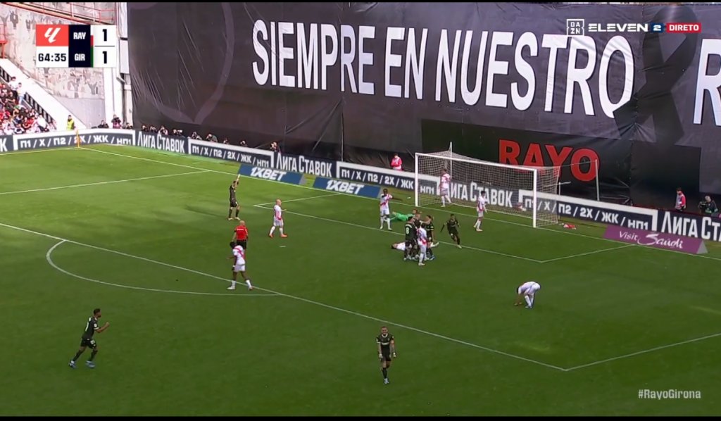 Στο 52ο λεπτό, οι παίκτες της Ράγιο συνδυάστηκαν, άψογα, με την μπάλα να φτάνει στον Εσπίνο, εκείνος σούταρε και ο Γκαζανίγκα έβγαλε σε κόρνερ. Στην εκτέλεση που ακολούθησε, ο Τρέχο σημάδεψε το δοκάρι, στη μεγάλη ευκαιρία της Ράγιο να πάρει κεφάλι στο σκορ. Στο 53', νέα καλή στιγμή για τους γηπεδούχους, σε σουτ του Ίζι Παλαθόν. Δυο λεπτά αργότερα, ο Τρέχο, για δεύτερη φορά, σημάδεψε το δοκάρι. Οι πολλές χαμένες ευκαιρίες δεν έμειναν ατιμώρητες, με τη Ράγιο να δέχεται δεύτερο γκολ. Τσιγκάνκοφ και Μαρτίν συνδυάστηκαν, η μπάλα έφτασε στον Ντόβμπικ, που σούταρε, με τον Ντιμιτριέφσκι να αποκρούει, αλλά, τον Σάβιο να παίρνει το ριμπάουντ και να υπογράφει την ολική ανατροπή, 1-2 στο 65ο λεπτό για την Τζιρόνα. Η πρωτοπόρος έφτασε κοντά και σε τρίτο γκολ, στο 72', με τον Ερέρα να σουτάρει, διαγώνια, τον Ντιμιτριέφσκι να αποκρούει και την μπάλα να χτυπάει στο δοκάρι. Η Ράγιο δεν απείλησε, ξανά, και γνώρισε τρίτη εφετινή ήττα.