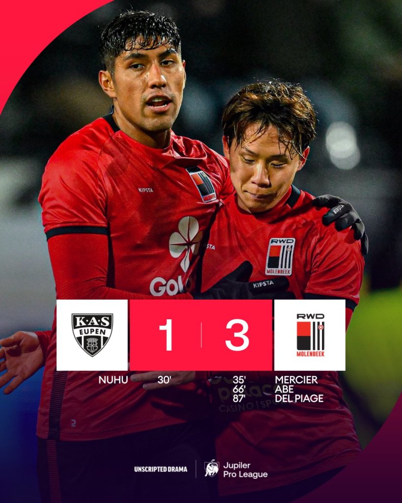 Η Μόλενμπεκ πέρασε με 3-1 από την έδρα της Έουπεν με ανατροπή, την προσπέρασε στην βαθμολογία και απομακρύνθηκε από την ζώνη του υποβιβασμού.