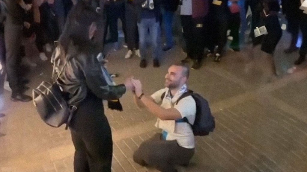 Μία υπέροχη στιγμή έλαβε χώρα έξω από την Αγιά Σοφιά, πριν το ματς της ΑΕΚ με τη Μαρσέιγ την Πέμπτη. Ένας φίλος της Μαρσέιγ, ο Άντονι, βρέθηκε στην Αθήνα για το παιχνίδι και κοντά στην αγαπημένη του και Ελληνίδα και φίλη της ΑΕΚ Μαρία. Όταν έγινε η κλήρωση και έφερε την ΑΕΚ με τη Μαρσέιγ στον ίδιο όμιλο ο Άντονι πήρε την απόφαση να κάνει πρόταση γάμου στην αγαπημένη του στον αγώνα της Αθήνας. Κι αυτό έγινε. Ο Άντονι έκανε την πρόταση του γάμου έξω από την Αγιά Σοφιά και μπροστά από τον Αετό, με τη Μαρία να λέει το «ναι» και να γνωρίζουν την αποθέωση από τον κόσμο που είδε live τη στιγμή.