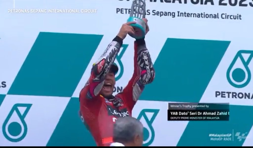 Στην πίστα της Σεπάνγκ, ο Ιταλός αναβάτης της Ducati ήταν ο μεγάλος νικητής, σε έναν αγώνα όπου είχε και άλλον ένα κερδισμένο, τον Πέκο Μπανάια. Ο Ιταλός αναβάτης, πρωτοπόρος στη βαθμολογία, τερμάτισε τρίτος και αύξησε τη διαφορά του από τον Χόρχε Μαρτίν, που τερμάτισε τέταρτος, στους 14 βαθμούς, με δύο αγώνες να απομένουν για το φινάλε της σεζόν.
