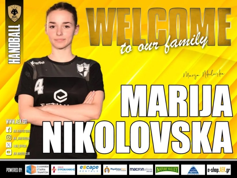 H AEK βρίσκεται στην ευχάριστη θέση να ανακοινώσει την έναρξη της συνεργασίας της με την Μαρία Νικολόβσκα. Η 24χρονη (31/08/1999) πλέι μέικερ, η οποία κατάγεται από τη Βόρεια Μακεδονία, υπέγραψε το συμβόλαιό της και εντάσσεται στο δυναμικό της γυναικείας ομάδας Χάντμπολ του Συλλόγου.