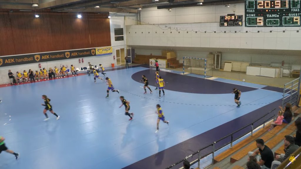 Στο πρώτο μέρος, η ΑΕΚ πήγαινε χέρι-χέρι με τον Κορυδαλλό μέχρι το 15’. Τότε, οι φιλοξενούμενη ομάδα πήρε μια διαφορά τεσσάρων τερμάτων (5-9), αλλά η «Ένωση» ισοφάρισε πριν τη λήξη του ημιχρόνου σε 9-9.