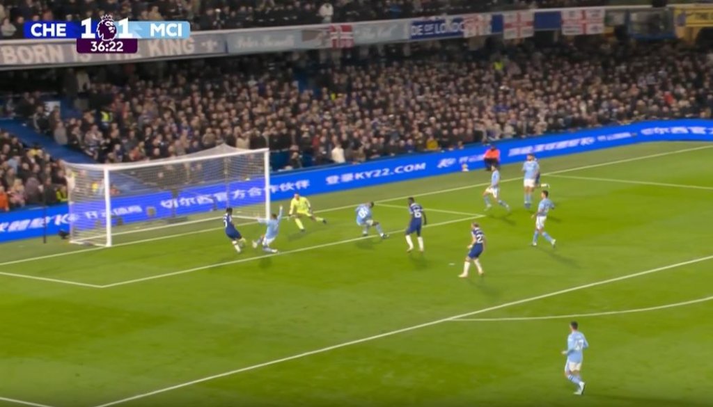 Και στο 37’ μετά από λάθος του Γκβάρντιολ, ο Τζέιμς έκανε το γύρισμα από δεξιά και ο Στέρλινγκ μπήκε με την μπάλα στα δίχτυα για το 2-1.