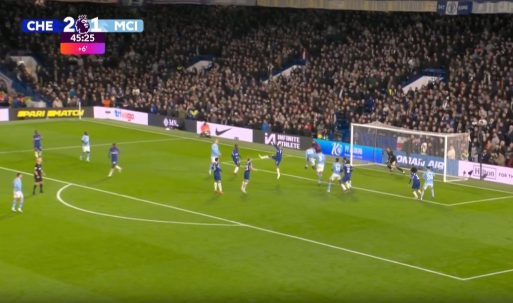 Στο 45+1’ ο Μπερνάρντο Σίλβα σέντραρε από αριστερά και ο Ακάντζι με πανέμορφη κεφαλιά ισοφάρισε σε 2-2.