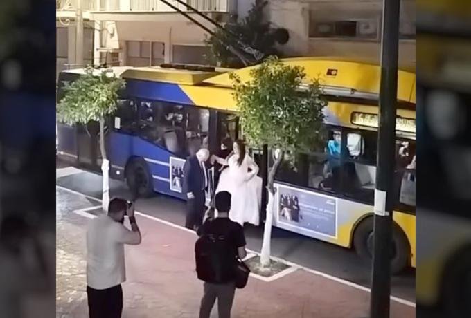 Με... τρόλεϊ πήγε στον γάμο της νύφη στον Πειραιά. Σύμφωνα με το piraeuspress.gr οι μοναδικές εικόνες καταγράφηκαν έξω από τον ιερό ναό του Αγίου Ελευθερίου στα Καμίνια του Πειραιά.