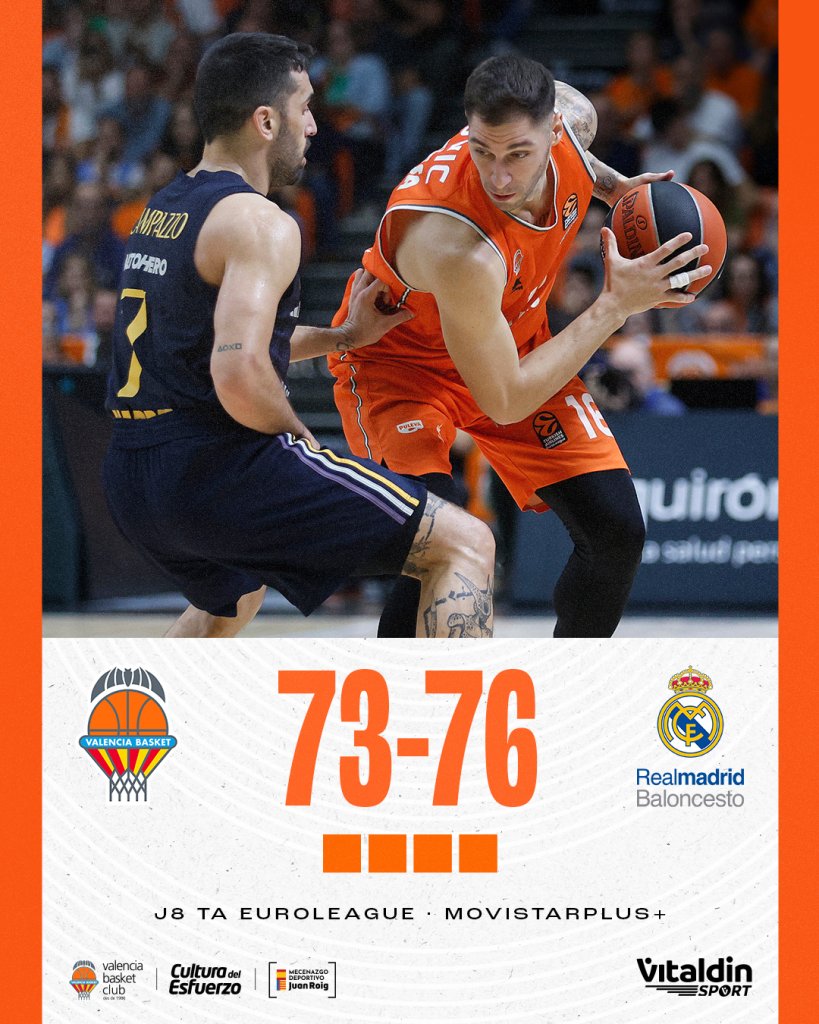 Η Ρεάλ Μαδρίτης (7-0) πέρασε νικηφόρα από τη Βαλένθια (5-3), επικρατώντας με 73-76 και συνεχίζει να οδηγεί την κούρσα στην Ευρωλίγκα με ρεκόρ 7-0.