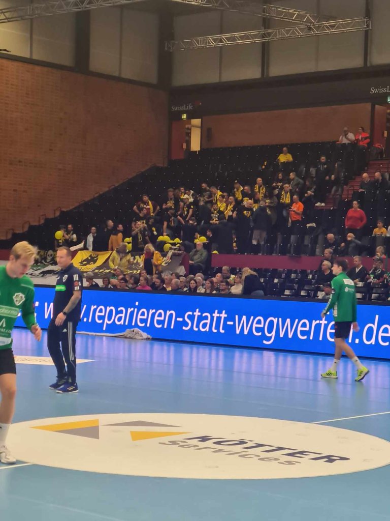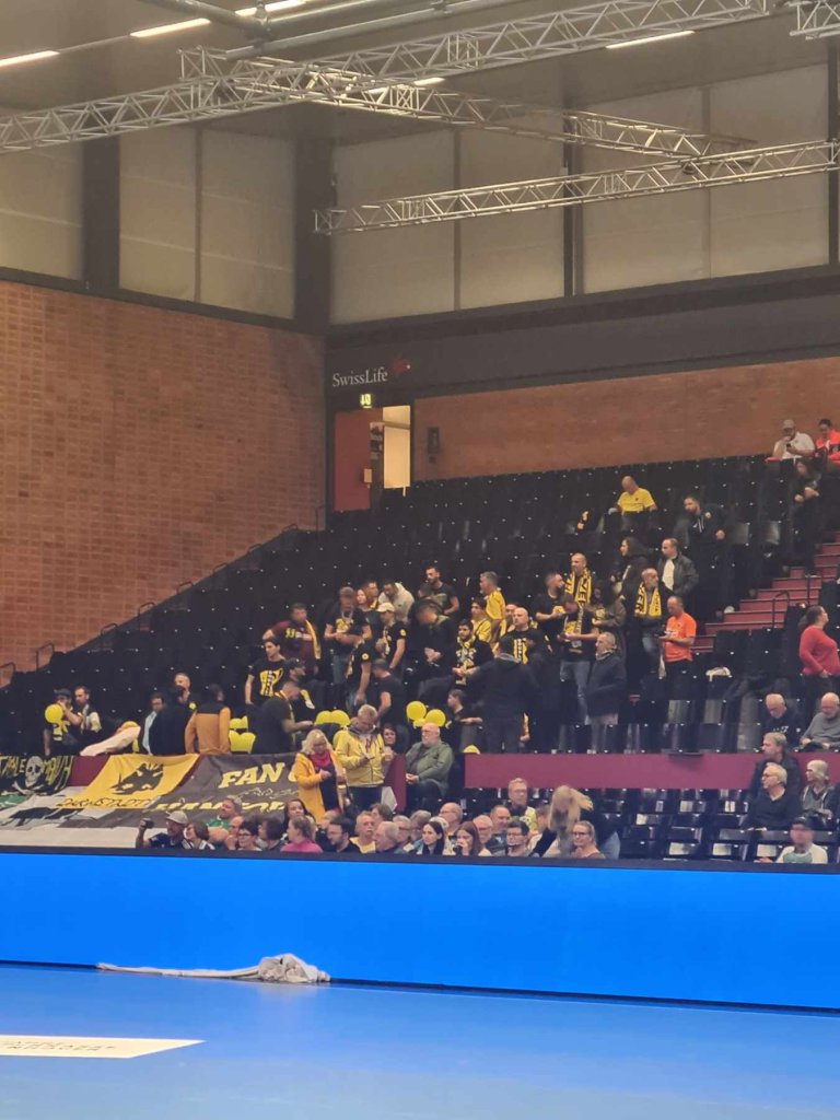 Οι οπαδοί της ΑΕΚ έδωσαν δυναμικό «παρών» στο κλειστό του Swiss Life Hall για την 3η αγωνιστική του δευτέρου Ομίλου του EHF European League και δεν σταμάτησαν λεπτό το τραγούδι, ώστε να δώσουν ώθηση στους παίκτες της ομάδας χάντμπολ. Ενώ, νωρίτερα υποδέχτηκαν την ομάδα χάντμπολ της Ένωσης δημιουργώντας εξαιρετική ατμόσφαιρα.