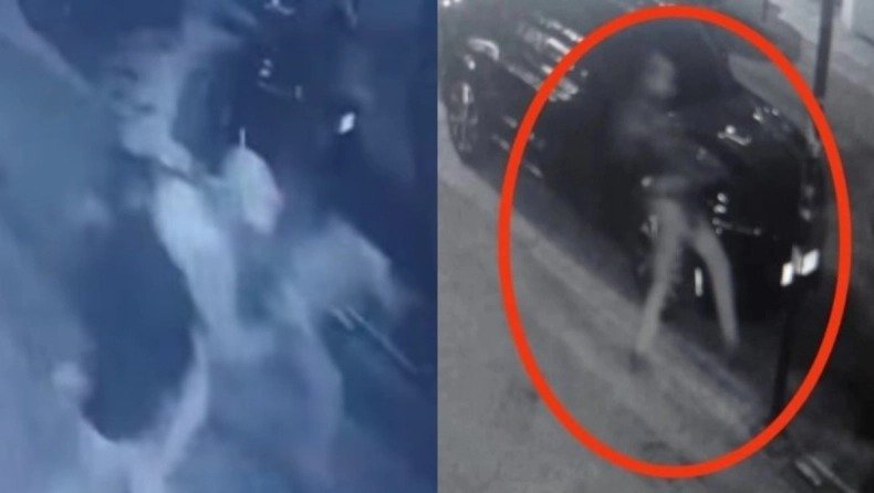 Ένας άνδρας που φοράει full-face και αλεξίσφαιρο τους ακολουθεί τρέχοντας, μέχρι που κλωτσάει τη 16χρονη στο κάτω μέρος του σώματός της.