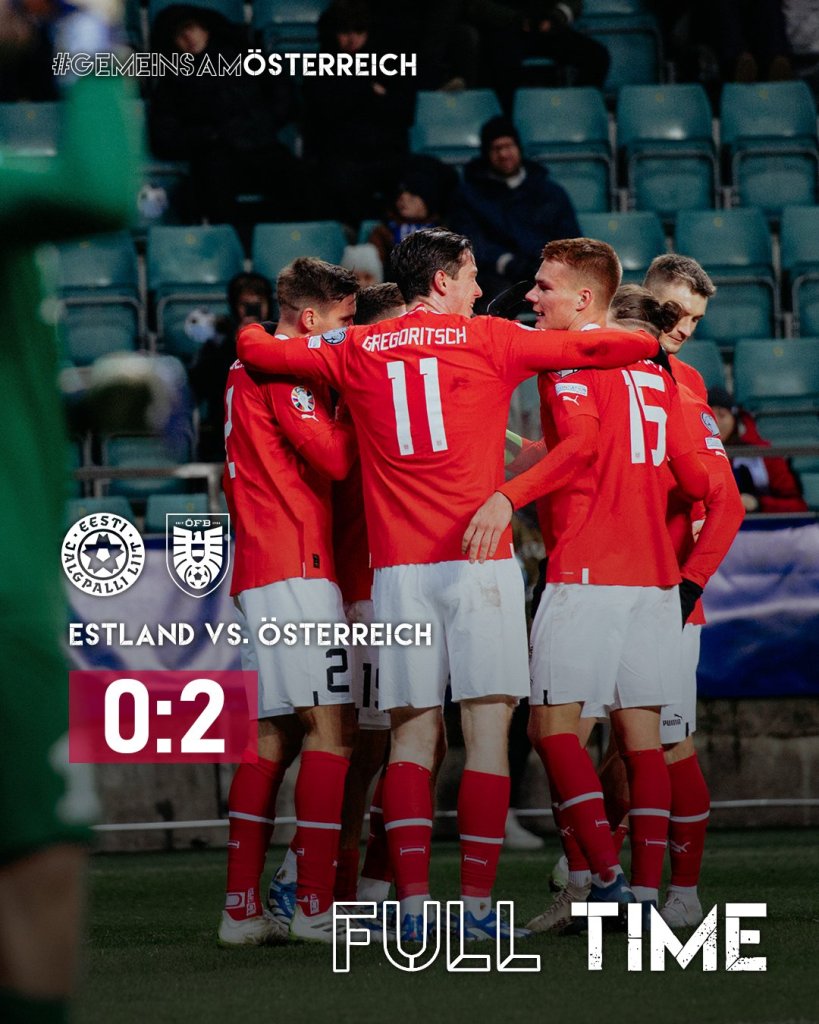 Σε ένα παιχνίδι δίχως βαθμολογικό ενδιαφέρον, η Αυστρία επικράτησε 2-0 της Εσθονίας εκτός έδρας και ανέβηκε, έστω και προσωρινά, στην κορυφή του ομίλου με 19 βαθμούς.