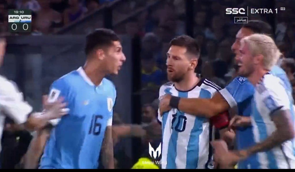 Στο 19ο λεπτό του Αργεντινή-Ουρουγουάη, για τα προκριματικά του Μουντιάλ 2026, προκλήθηκε ένταση, μεταξύ των παικτών, και ο Λιονέλ Μέσι παρενέβη, προκειμένου να χωρίσει τον Ματίας Ολιβέιρα από τους παίκτες της ομάδας του, πιάνοντάς τον, ωστόσο, από τον λαιμό.
