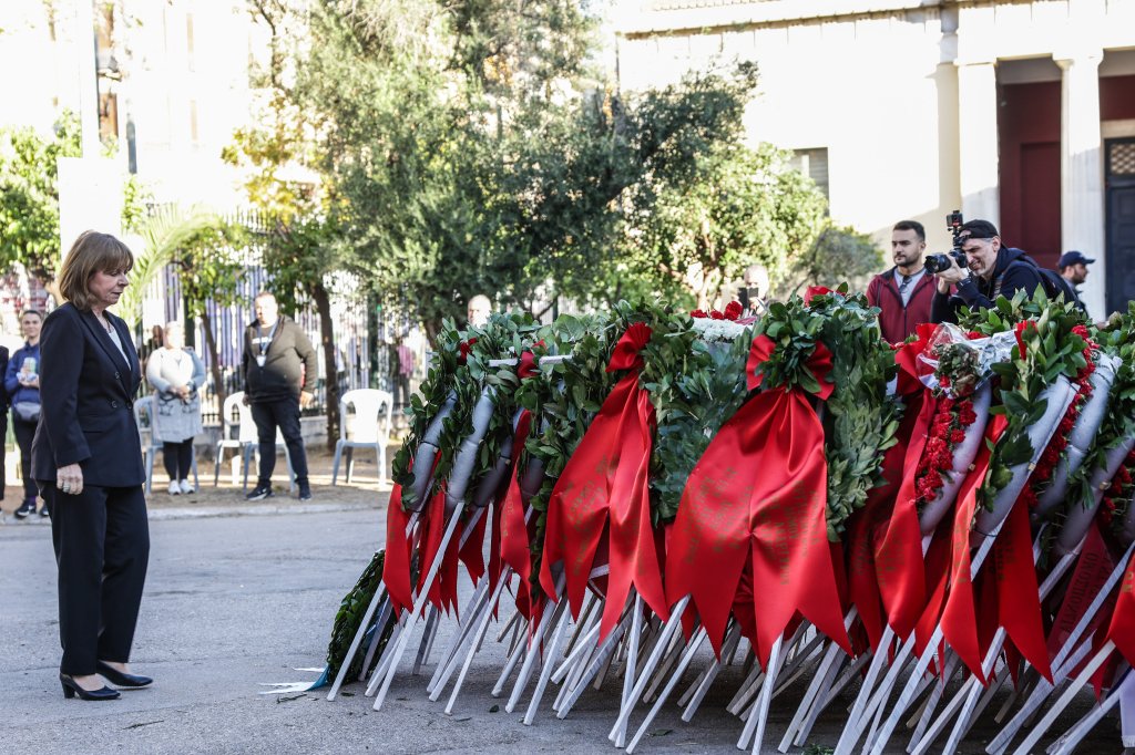 Η πρόεδρος της Δημοκρατίας, Κατερίνα Σακελλαροπούλου κατέθεσε σήμερα στεφάνι στο μνημείο του Πολυτεχνείου ανήμερα της επετείου των 50 ετών. Κατόπιν, ανέφερε ότι «Σήμερα που η δημοκρατία είναι εδραιωμένη και ισχυρή, χρέος μας παραμένει η προάσπισή της με το ίδιο πάθος και την ίδια ακλόνητη βούληση που έδειξαν οι πολιορκημένοι εκείνοι νέοι πριν από πενήντα ολόκληρα χρόνια».