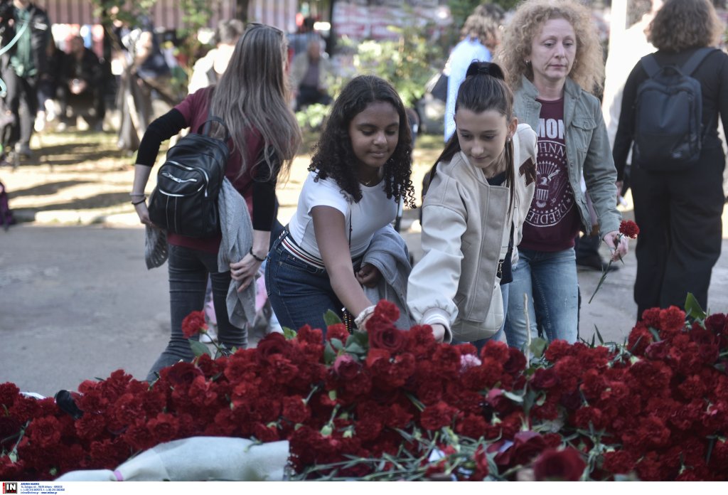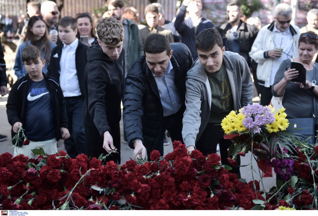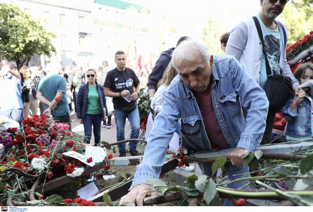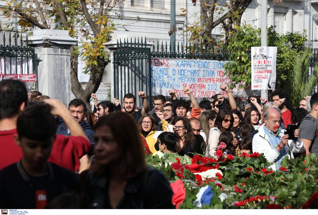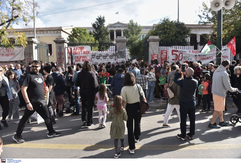 Άνθρωποι όλων των ηλικιών, ακόμη και μικρά παιδιά μπήκαν στο προαύλιο του εκπαιδευτικού ιδρύματος, εκεί όπου πριν από 50 χρόνια χιλιάδες φοιτητές και πολίτες έζησαν την εξέγερση.