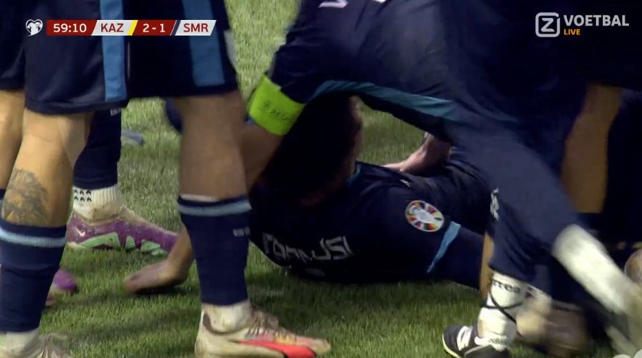 Στο Σαν Μαρίνο δεν μπορούν να ελπίζουν σε μεγάλες πορείες και εντυπωσιακές νίκες. Τους αρκεί όμως ένα γκολ για να πανηγυρίσουν έξαλλα. Έτσι έγινε και σήμερα(17/11) όταν η ομάδα από το μικρό κρατίδιο σκόραρε κόντρα στο Καζακστάν. Συγκεκριμένα, στο 60ο λεπτό ο Φραντσιόζι με κοντινή κεφαλιά μείωσε προσωρινά σε 2-1, προτού ο Αϊμπέτοφ με πέναλτι διαμορφώσει το τελικό 3-1.