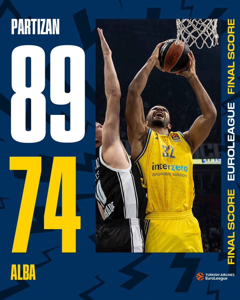 Η Παρτίζαν επικράτησε της Άλμπα Βερολίνου με 87-74 και επέστρεψε στις νίκες αφού το καρέ των ΛεΝτέι, Αβράμοβιτς, Νάναλι και Άντζουσιτς τελείωσε τη δουλειά για την ομάδα του Ζέλικο Ομπράντοβιτς.
