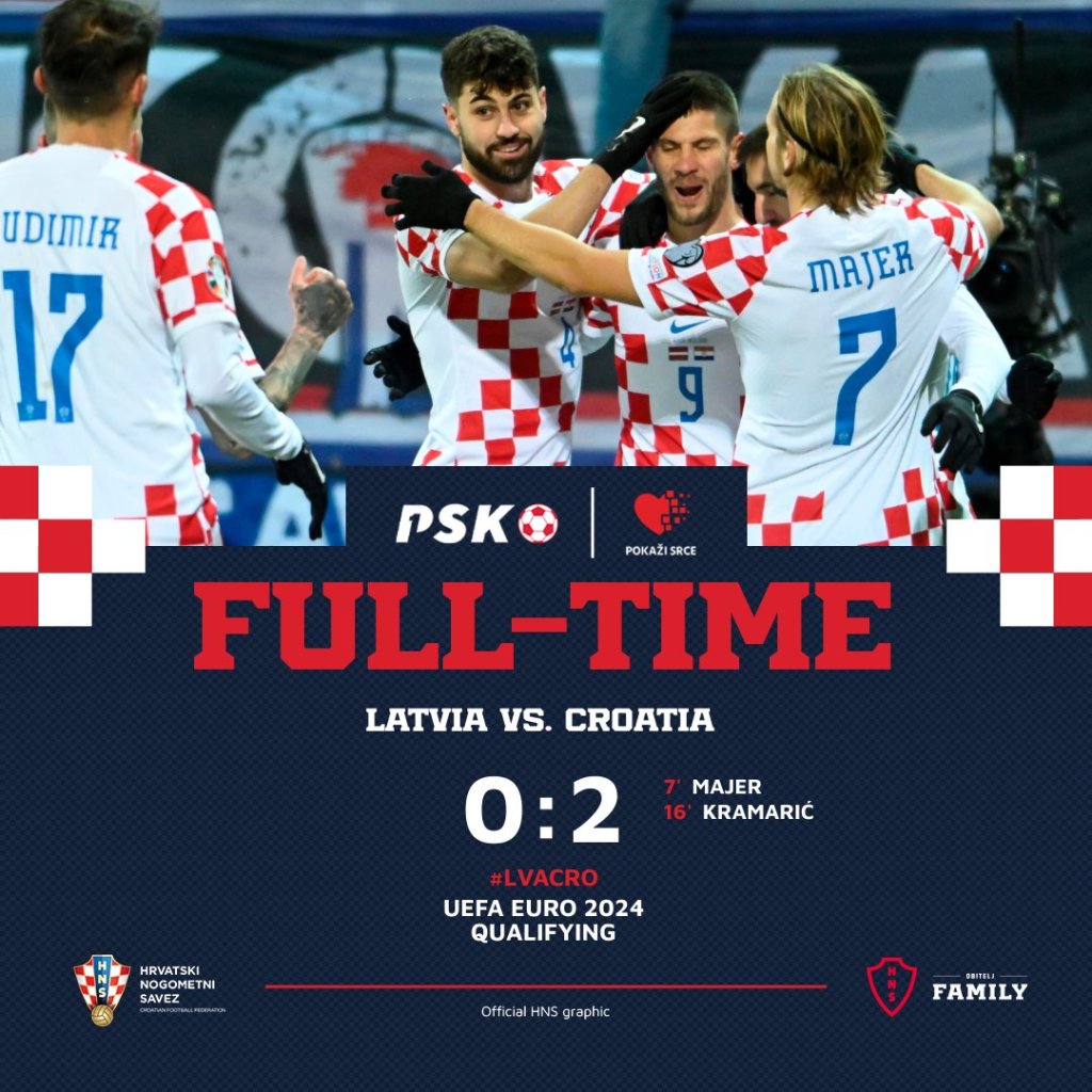 Η Κροατία έκανε το καθήκον της, πέρασε με 2-0 από τη Λετονία και πλέον η πρόκριση περνά από τα δικά της πόδια και μόνο. Στη 2η θέση και στο +2 από την Ουαλία η ομάδα του Ντάλιτς που την τελευταία αγωνιστική υποδέχεται την Αρμενία.