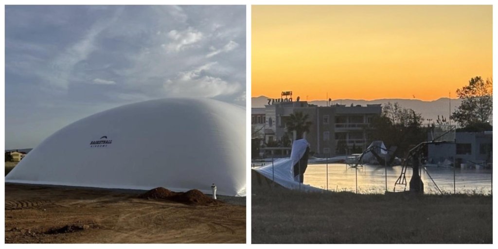 Σοβαρό ατύχημα στην ανατολική Θεσσαλονίκη καθώς από τον αέρα ξηλώθηκε το σκέπαστρο αθλητικού χώρου. Το περιστατικό σημειώθηκε το μεσημέρι του Σαββάτου. Οι ισχυροί άνεμοι ξήλωσαν τον θόλο που σκέπαζε το Basketball Airdome στην περιοχή της Θέρμης.