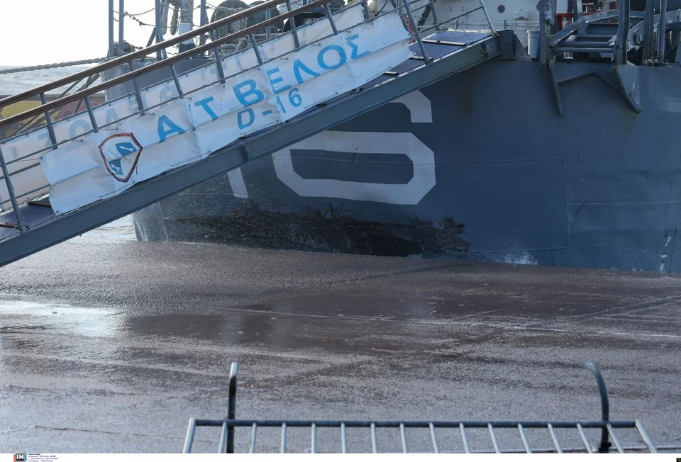 Οι δυνατές ριπές ανέμου και τα μεγάλα κύματα «χτύπησαν» το «Βέλος» στην πρύμνη του, στο σημείο που εφάπτεται με το κρηπίδωμα της Νέας Παραλίας.
