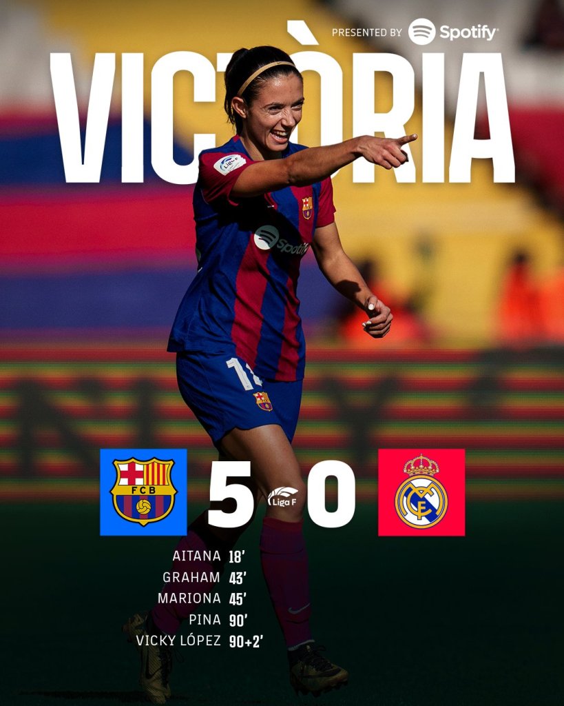 Στο δωδέκατο μεταξύ τους clasico σε γυναικείο επίπεδο, η Μπαρτσελόνα έδειξε και πάλι την ανωτερότητα της και έφτασε εύκολα στο 12/12, δείχνοντας για ακόμη μια φορά την ποιότητα που έχει στο ρόστερ της. Παράλληλα, οι «μπλαουγκράνα» έδωσαν συνέχεια στο απόλυτο σερί τους, φτάνοντας στο 9/9 στο πρωτάθλημα. Έτσι μεγάλωσαν τη διαφορά από τις Μαδριλένες στους έξι βαθμούς, έχοντας 39 γκολ ενεργητικό και μόλις δύο παθητικό.