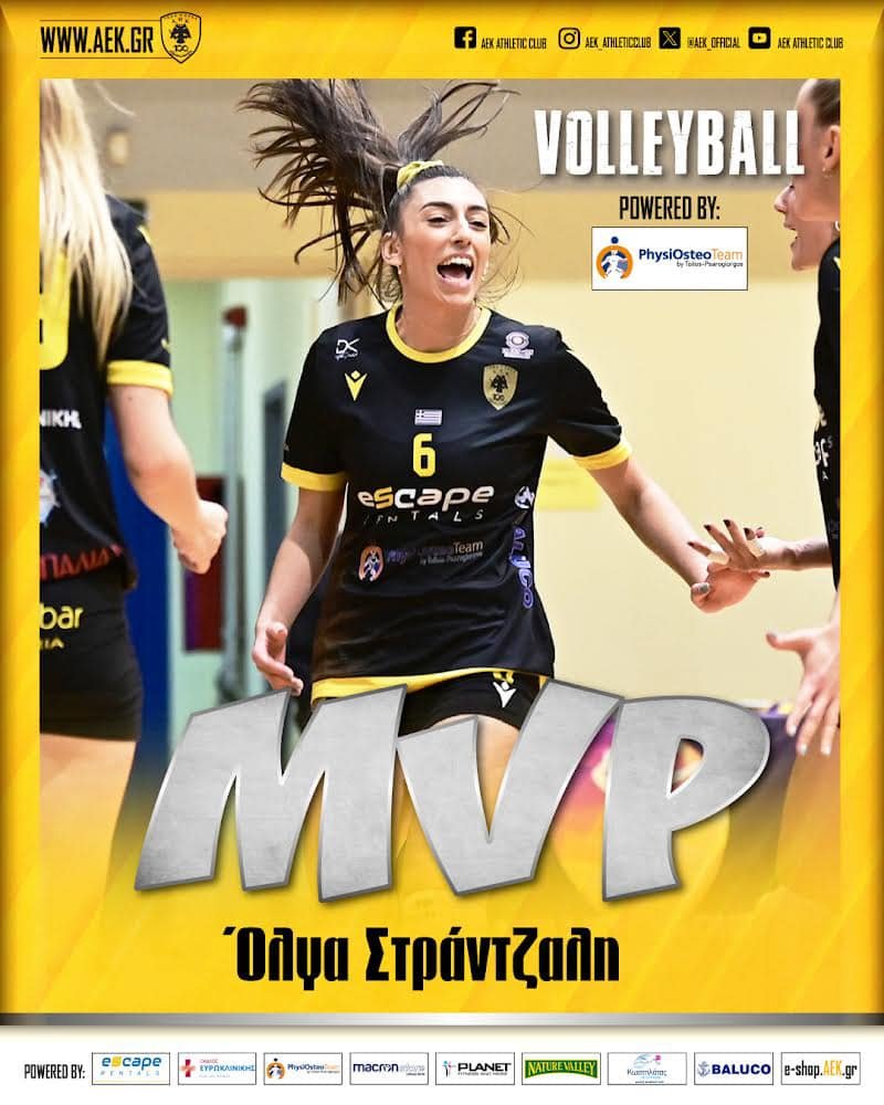 Η γυναικεία ομάδα βόλεϊ της ΑΕΚ επικράτησε στο τάι μπρέικ του Άρη (3-2 σετ) κάνοντας μεγάλη ανατροπή για την 5η αγωνιστική του Πρωταθλήματος της Volleyleague και σε αυτό το παιχνίδι είχε την Όλγα Στράντζαλη ως κορυφαία. Μάλιστα, μετά το τέλος της αναμέτρησης η Ελληνίδα ακραία κέρδισε και τον τίτλο του «PhysiOsteo Team» MVP.