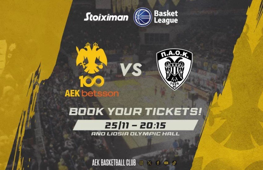 Η ΑΕΚ αντιμετωπίζει ως γνωστόν τον Παναθηναϊκό στο ΟΑΚΑ σήμερα Δευτέρα (20/11, 17:15-aek365 και ΕΡΤ3) για την 7η αγωνιστική της Basket League, ενώ θα ακολουθήσει το παιχνίδι στο Basketball Champions League με αντίπαλο την Κινγκ Στσέτσιν την Τετάρτη (22/11) στο Olympic Hall των Άνω Λιοσίων. Μετά από αυτούς τους δύο αγώνες, ακολουθεί το ματς και πάλι στα Λιόσια, κόντρα στον ΠΑΟΚ για την 8η αγωνιστική της Basket League και η διοίκηση της ΚΑΕ ΑΕΚ ανακοίνωσε επίσημα ότι ξεκίνησε η διάθεση των εισιτηρίων για αυτή την αναμέτρηση και ότι οι γυναίκες θα έχουν δωρεάν είσοδο.